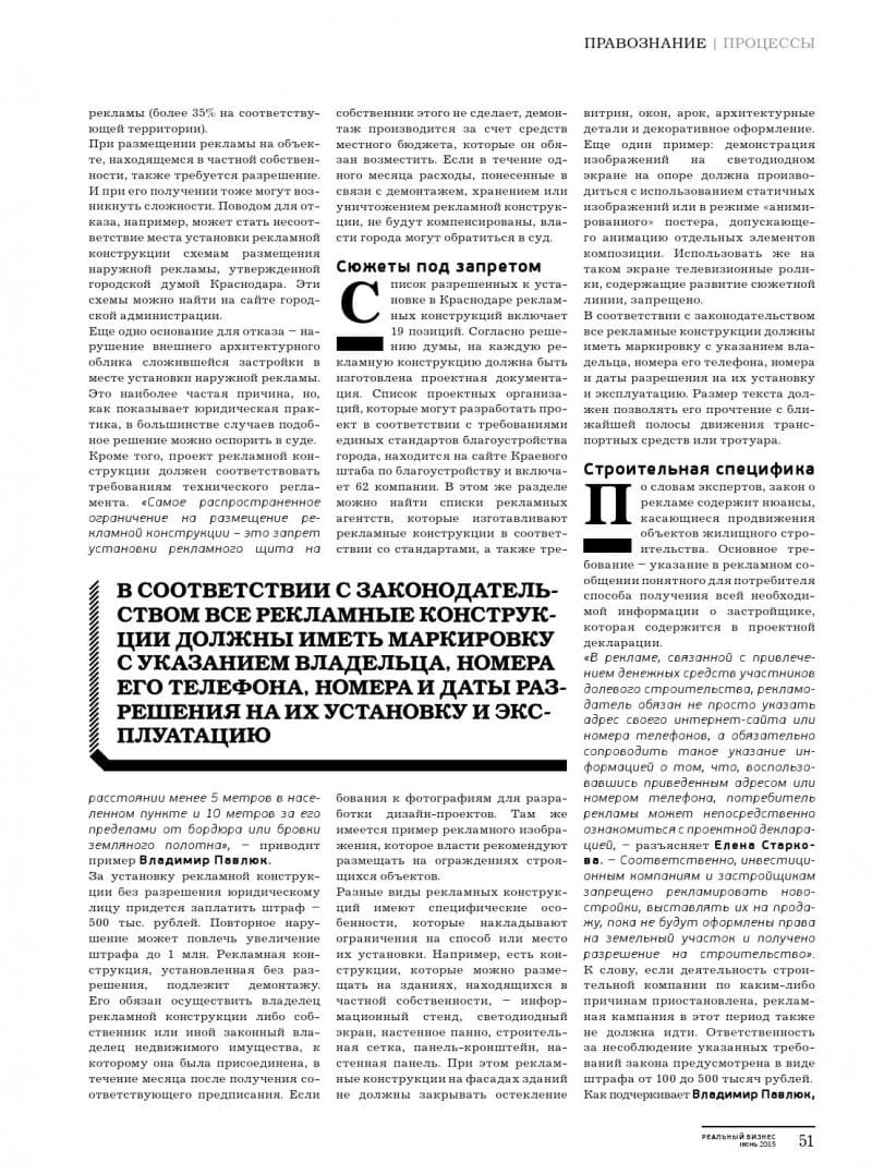 Публикация статьи "Излишки наружной рекламы" Павлюк В.А. в журнале Реальный Бизнес